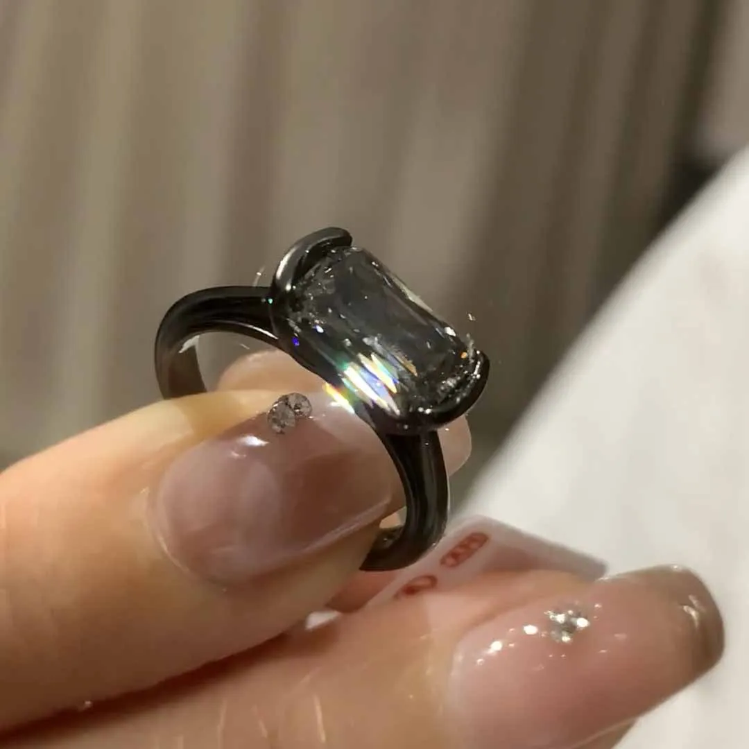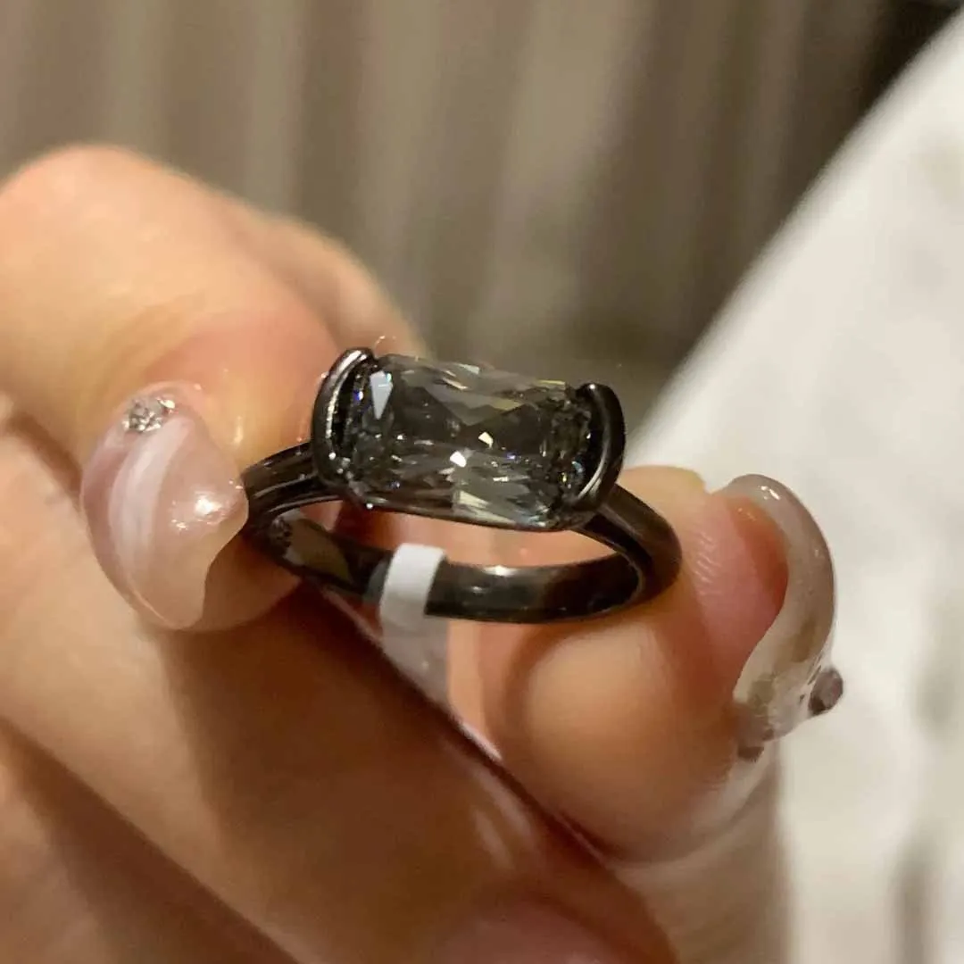 هذا المنتج عبارة عن خاتم إصبع. يتميز الخاتم بتصميم مناسب للجنسين، وهو مصنوع من الفضة المطلية باللون الأسود ويتضمن قطعة ألماس سوداء.